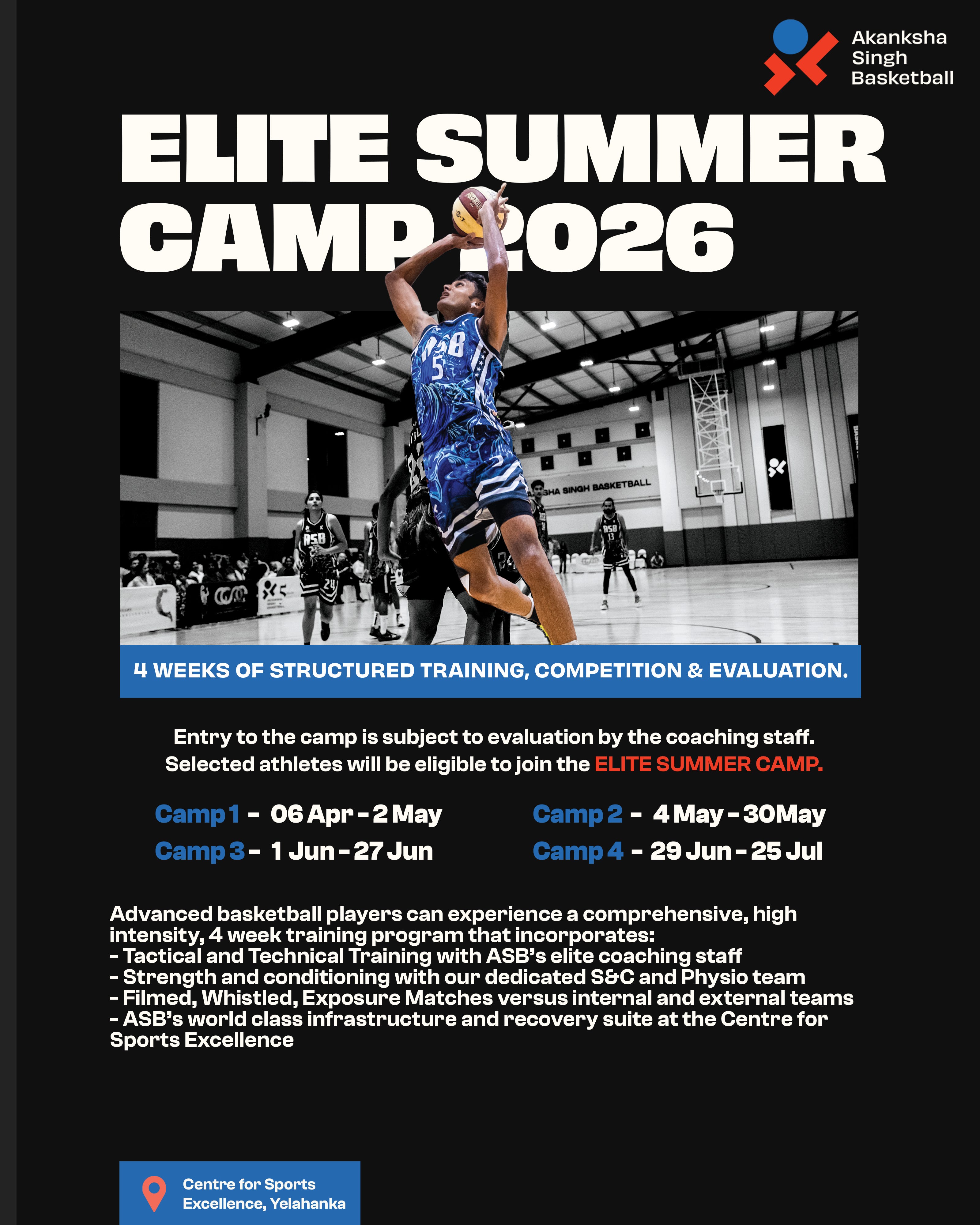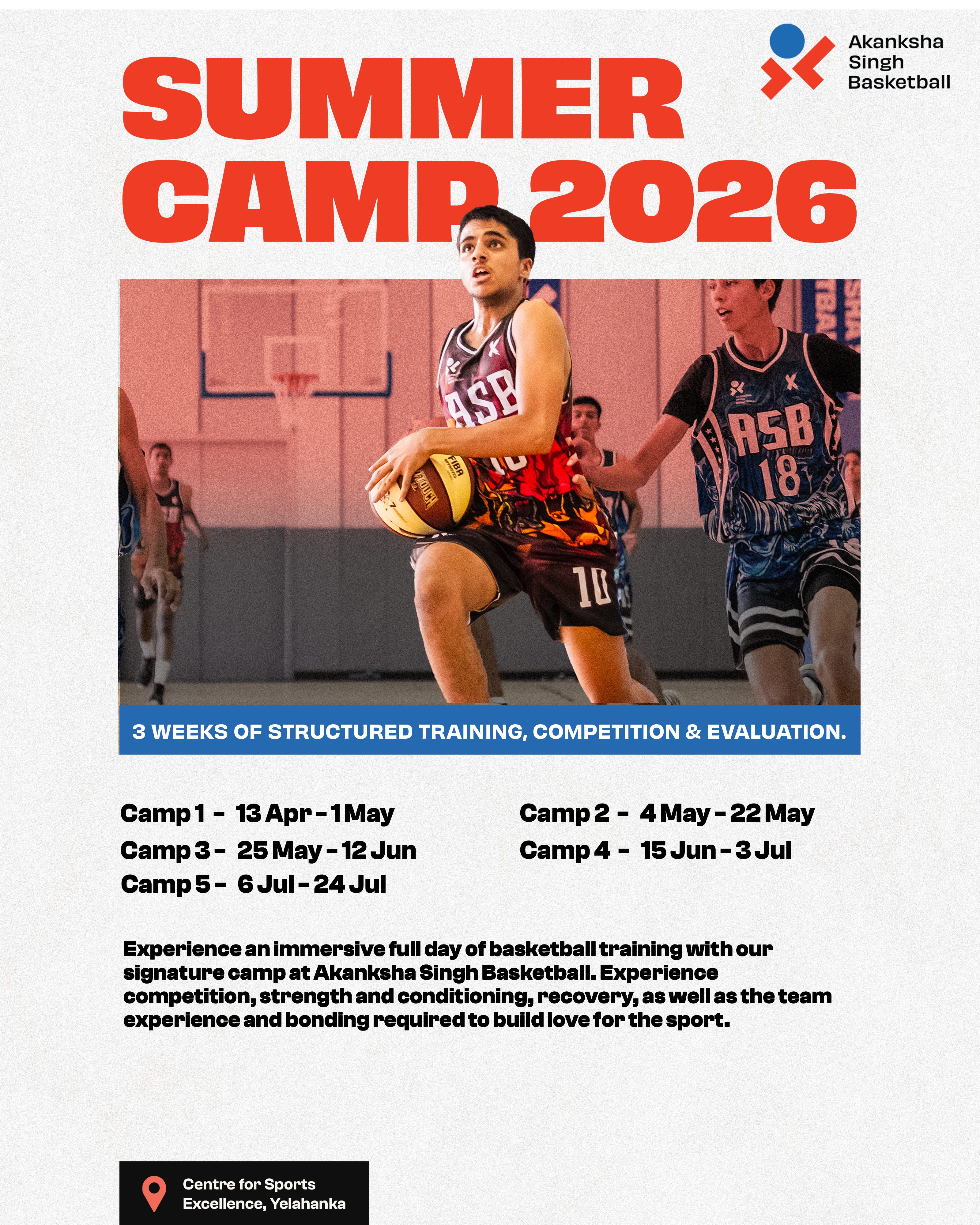 Players from across India & abroad, of all ages and skill levels, can now register for the camps at the premium Akanksha Singh Basketball Academy in Bengaluru (residential facility available)
