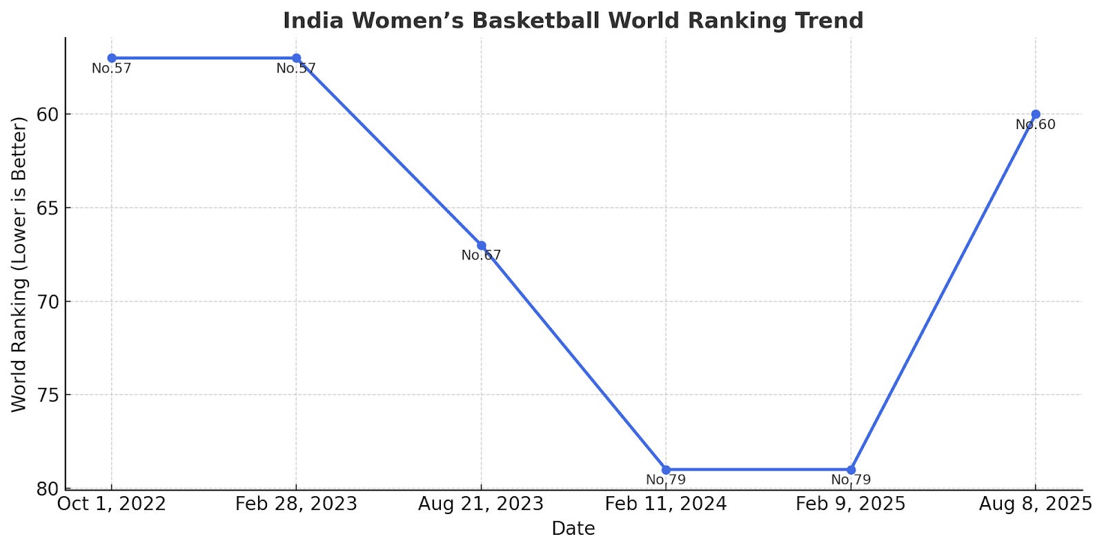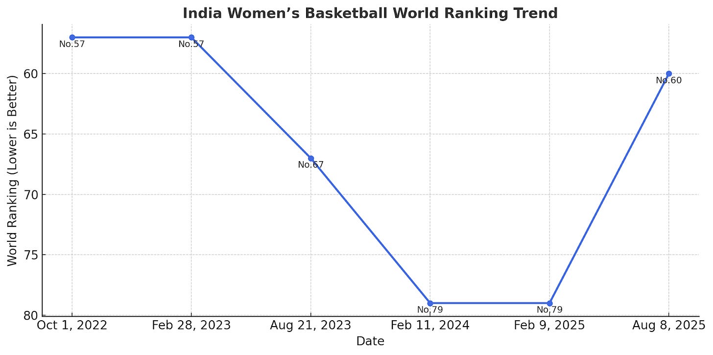 On February 9, 2025, the Indian women’s basketball team was ranked No. 79 in the world.