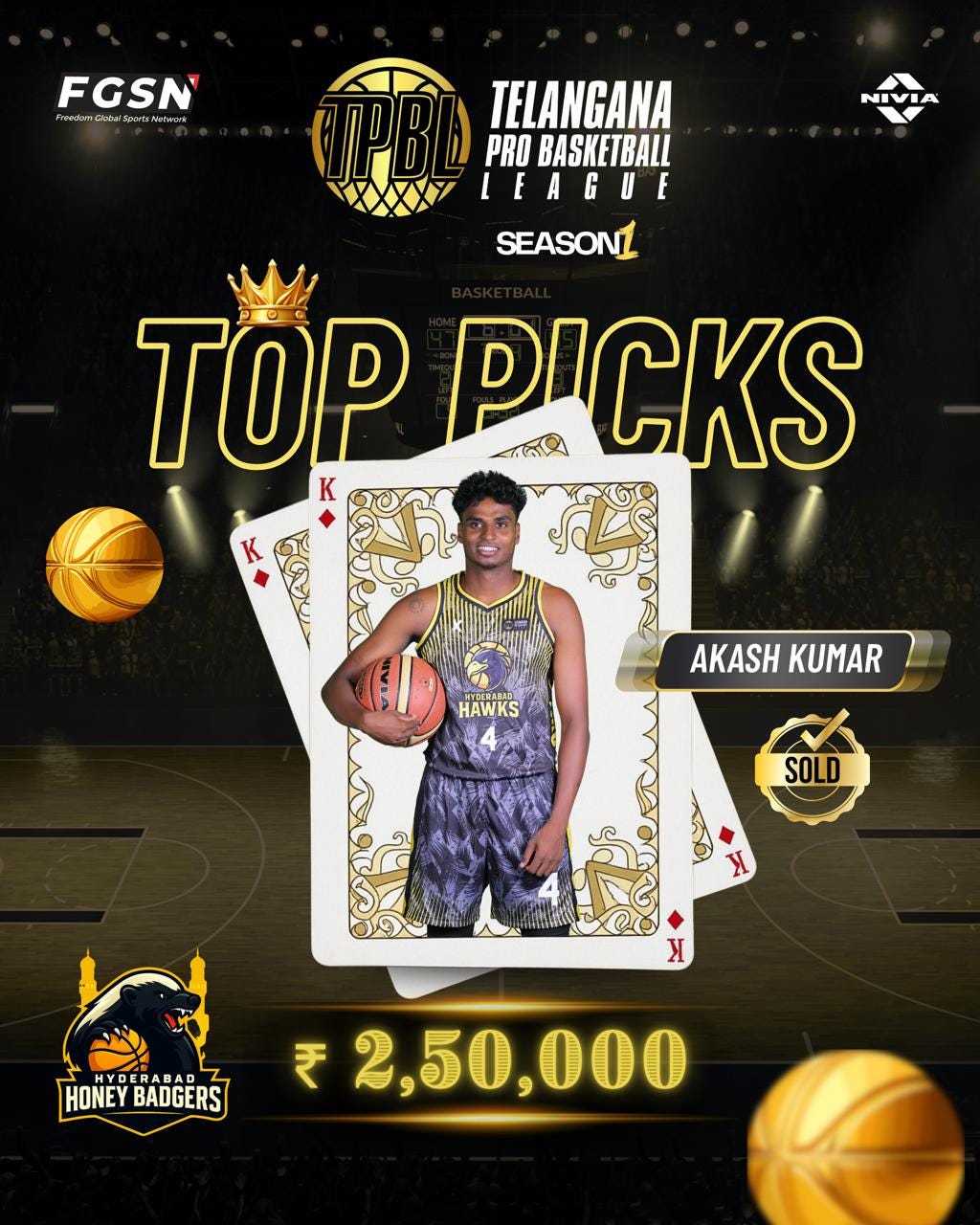 Akash Kumar – Sold to Hyderabad Honey Badgers for ₹2.5 Lakhs
